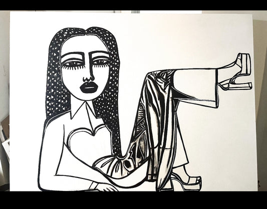 1 a a3ft original oil painting framed title “3ft black and white finger waves”
