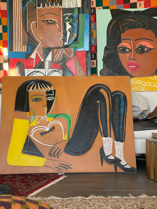 1 a a 3ft tall original oil painting framed titled- “Get Ready With Me”