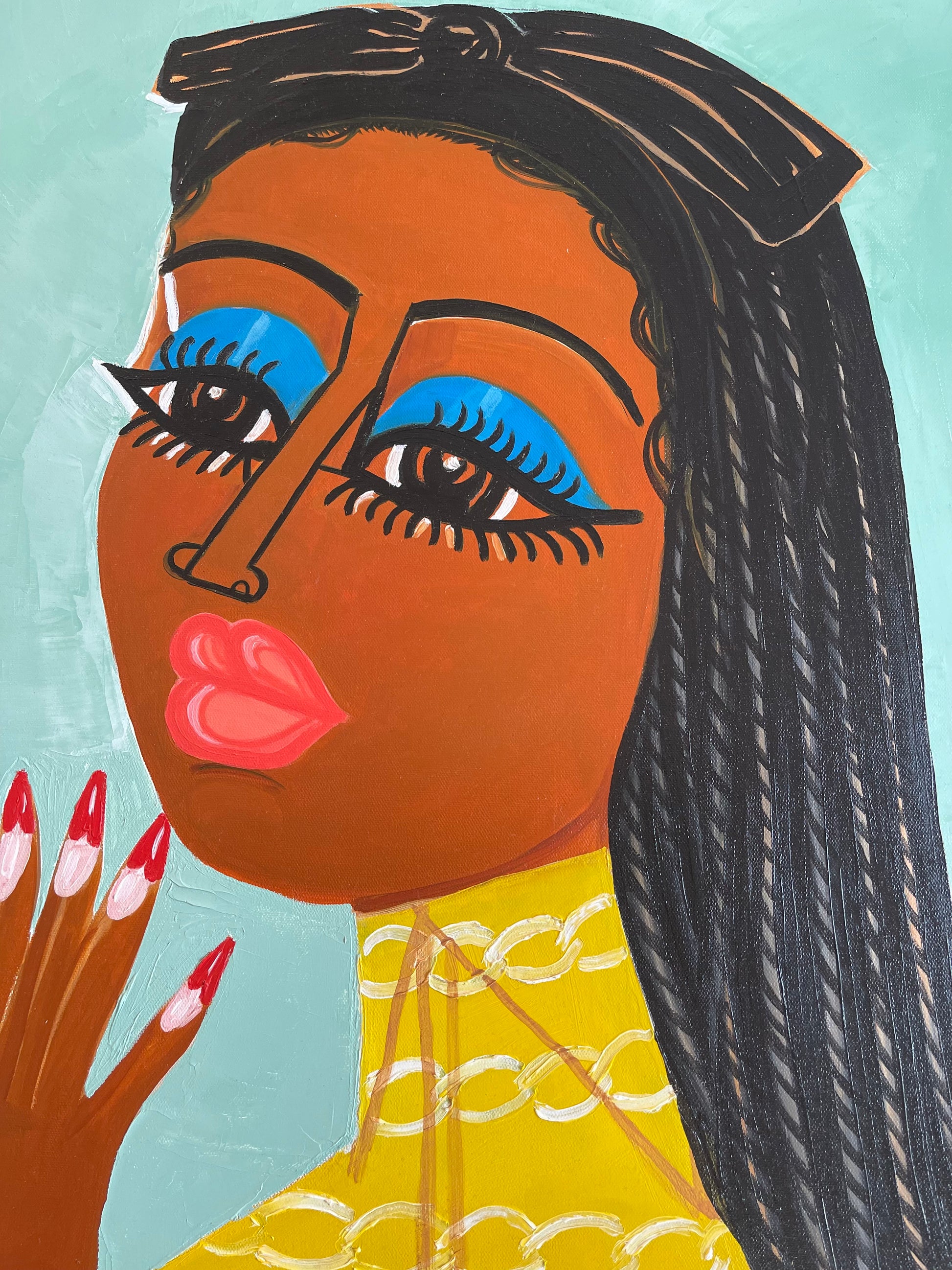 1 a a 3ft tall original oil painting framed titled- “Get Ready With Me”
